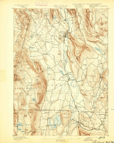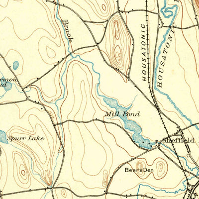 A 1893 historical topographic map of Sheffield in Massachusetts produced by the United States Geological Survey (USGS). It shows contour lines, place names, water bodies and roads. Map services and data available from U.S. Geological Survey, National Geospatial Program. Map was obtained from http...