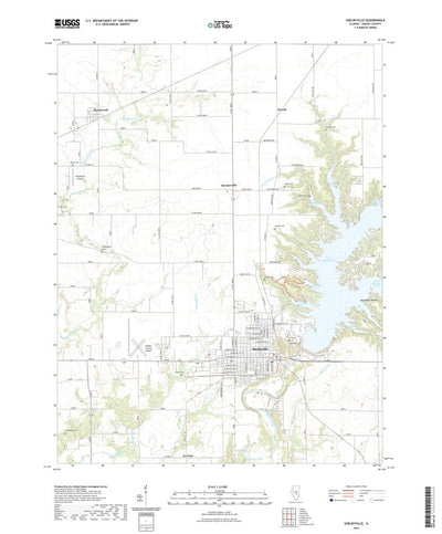 A digital topographic map of Shelbyville in Illinois produced by the United States Geological Survey (USGS) in 2021. The map is part of the National Map series of 7.5 minute quadrangle maps. It shows contour lines, place names, water bodies and roads. Map services and data available from U.S. Geo...