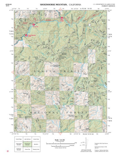 National Forest Quadrangle Topographic Maps show 7.5 minute sections of National Forests at 1 inch to the mile scale. The maps are individual sheets from the more complete printed atlas available for sale from the USDA Forest Service. Map features are roads, trails, recreation facilities, and lan...