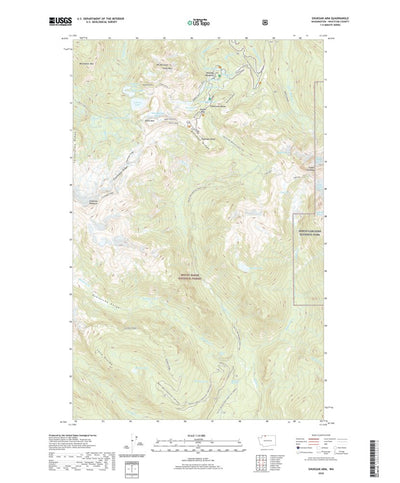 A digital topographic map of Shuksan Arm in Washington produced by the United States Geological Survey (USGS) in 2020. The map is part of the National Map series of 7.5 minute quadrangle maps. It shows contour lines, place names, water bodies and roads. Map services and data available from U.S. G...