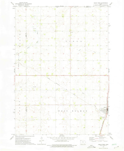A 1972 historical topographic map of Sibley West in Iowa produced by the United States Geological Survey (USGS). It shows contour lines, place names, water bodies and roads. Map services and data available from U.S. Geological Survey, National Geospatial Program. Map was obtained from https://www...