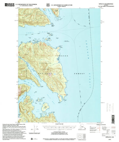 A 1997 historical topographic map of Sitka B-3 in Alaska produced by the United States Geological Survey (USGS). It shows contour lines, place names, water bodies and roads. Map services and data available from U.S. Geological Survey, National Geospatial Program. Map was obtained from https://www...