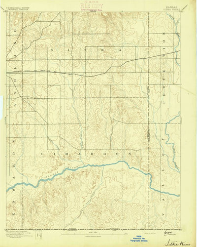 A 1894 historical topographic map of Sitka in Kansas produced by the United States Geological Survey (USGS). It shows contour lines, place names, water bodies and roads. Map services and data available from U.S. Geological Survey, National Geospatial Program. Map was obtained from https://www.sci...