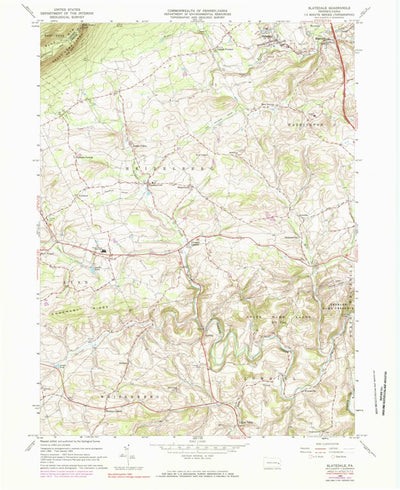 A 1965 historical topographic map of Slatedale in Pennsylvania produced by the United States Geological Survey (USGS). It shows contour lines, place names, water bodies and roads. Map services and data available from U.S. Geological Survey, National Geospatial Program. Map was obtained from https...