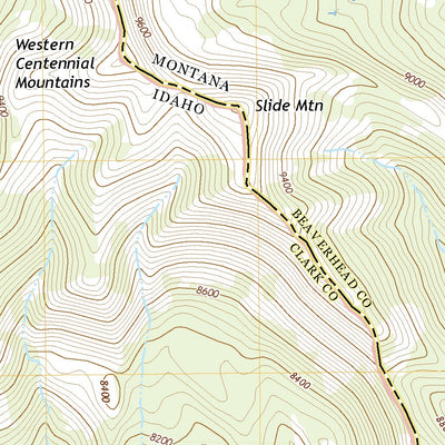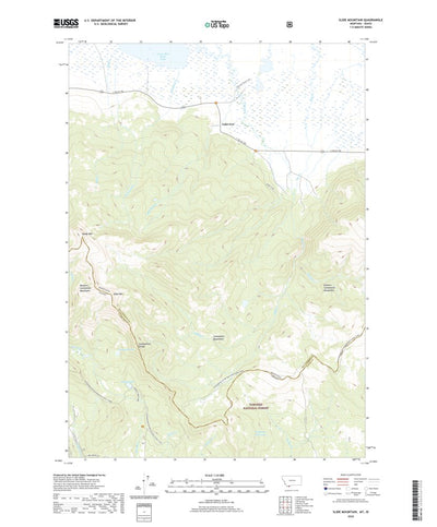 A digital topographic map of Slide Mountain in Montana produced by the United States Geological Survey (USGS) in 2020. The map is part of the National Map series of 7.5 minute quadrangle maps. It shows contour lines, place names, water bodies and roads. Map services and data available from U.S. G...