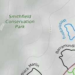 Map of the Smithfield mountain bike trails. Including some POI such as parking locations.