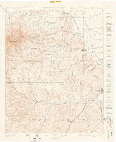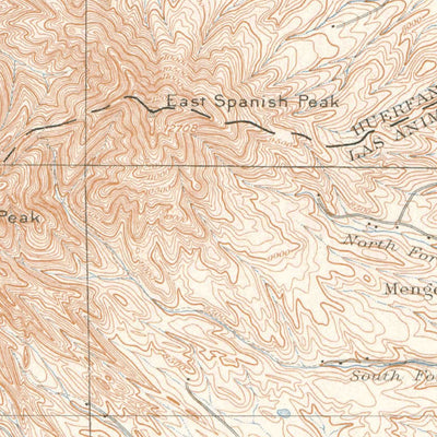 A 1900 historical topographic map of Spanish Peaks in Colorado produced by the United States Geological Survey (USGS). It shows contour lines, place names, water bodies and roads. Map services and data available from U.S. Geological Survey, National Geospatial Program. Map was obtained from https...