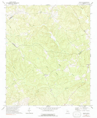 A 1972 historical topographic map of Sparta NW in Georgia produced by the United States Geological Survey (USGS). It shows contour lines, place names, water bodies and roads. Map services and data available from U.S. Geological Survey, National Geospatial Program. Map was obtained from https://ww...