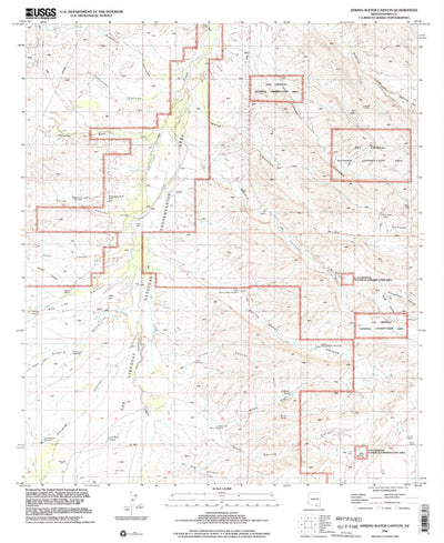 A 1996 historical topographic map of Spring Water Canyon in Arizona produced by the United States Geological Survey (USGS). It shows contour lines, place names, water bodies and roads. Map services and data available from U.S. Geological Survey, National Geospatial Program. Map was obtained from ...