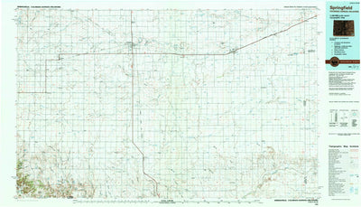 A 1984 historical topographic map of Springfield in Colorado produced by the United States Geological Survey (USGS). It shows contour lines, place names, water bodies and roads. Map services and data available from U.S. Geological Survey, National Geospatial Program. Map was obtained from https:/...