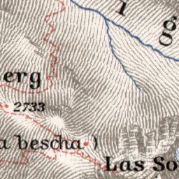 Old vintage map of St Moritz and Pontresina vicinities from 1909, located in Switzerland, produced by Wagner & Debes, at the scale of 1:50,000. This digitally re-mastered image is a part of the Discus Media 1900 Collection.