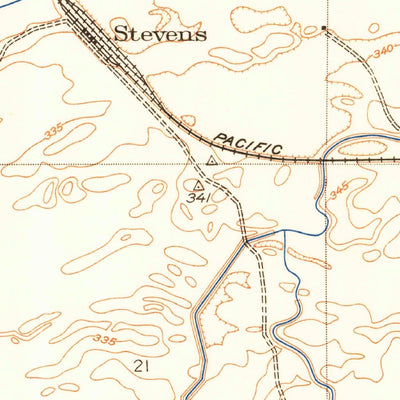 A 1950 historical topographic map of Stevens in California produced by the United States Geological Survey (USGS). It shows contour lines, place names, water bodies and roads. Map services and data available from U.S. Geological Survey, National Geospatial Program. Map was obtained from https://w...