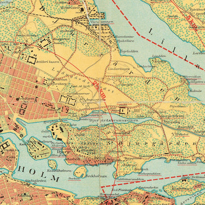 Stockholm city and adjacent communes map, 1911