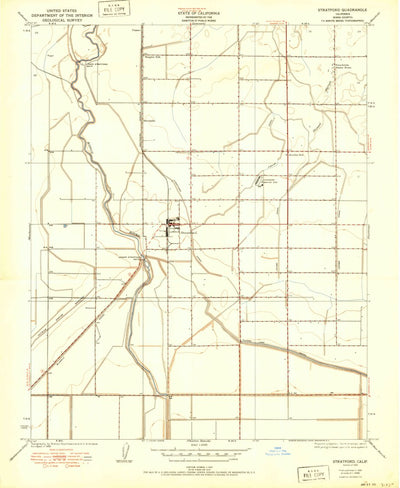 A 1950 historical topographic map of Stratford in California produced by the United States Geological Survey (USGS). It shows contour lines, place names, water bodies and roads. Map services and data available from U.S. Geological Survey, National Geospatial Program. Map was obtained from https:/...