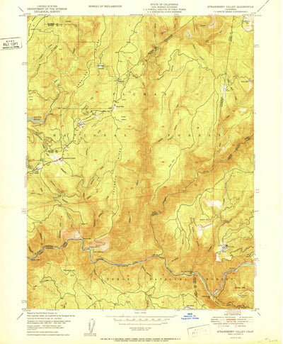 A 1950 historical topographic map of Strawberry Valley in California produced by the United States Geological Survey (USGS). It shows contour lines, place names, water bodies and roads. Map services and data available from U.S. Geological Survey, National Geospatial Program. Map was obtained from...