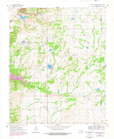 A 1963 historical topographic map of Sulphur South in Oklahoma produced by the United States Geological Survey (USGS). It shows contour lines, place names, water bodies and roads. Map services and data available from U.S. Geological Survey, National Geospatial Program. Map was obtained from https...