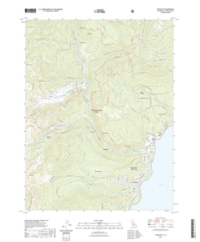 A digital topographic map of Tahoe City in California produced by the United States Geological Survey (USGS) in 2021. The map is part of the National Map series of 7.5 minute quadrangle maps. It shows contour lines, place names, water bodies and roads. Map services and data available from U.S. Ge...