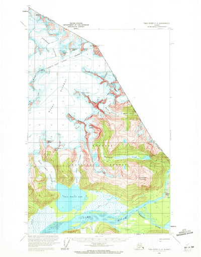 A 1960 historical topographic map of Taku River C-6 in Alaska produced by the United States Geological Survey (USGS). It shows contour lines, place names, water bodies and roads. Map services and data available from U.S. Geological Survey, National Geospatial Program. Map was obtained from https:...