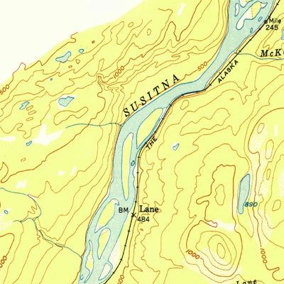 A 1951 historical topographic map of Talkeetna C-1 in Alaska produced by the United States Geological Survey (USGS). It shows contour lines, place names, water bodies and roads. Map services and data available from U.S. Geological Survey, National Geospatial Program. Map was obtained from https:/...