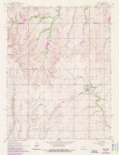 A 1964 historical topographic map of Tampa in Kansas produced by the United States Geological Survey (USGS). It shows contour lines, place names, water bodies and roads. Map services and data available from U.S. Geological Survey, National Geospatial Program. Map was obtained from https://www.sci...
