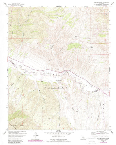 A 1959 historical topographic map of Taylor Canyon in California produced by the United States Geological Survey (USGS). It shows contour lines, place names, water bodies and roads. Map services and data available from U.S. Geological Survey, National Geospatial Program. Map was obtained from htt...