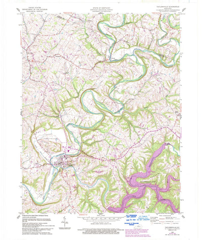 A 1960 historical topographic map of Taylorsville in Kentucky produced by the United States Geological Survey (USGS). It shows contour lines, place names, water bodies and roads. Map services and data available from U.S. Geological Survey, National Geospatial Program. Map was obtained from https:...