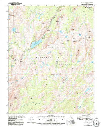A 1992 historical topographic map of Tenaya Lake in California produced by the United States Geological Survey (USGS). It shows contour lines, place names, water bodies and roads. Map services and data available from U.S. Geological Survey, National Geospatial Program. Map was obtained from https...