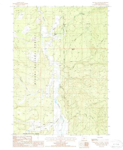 A 1988 historical topographic map of The Bull Pasture in Oregon produced by the United States Geological Survey (USGS). It shows contour lines, place names, water bodies and roads. Map services and data available from U.S. Geological Survey, National Geospatial Program. Map was obtained from http...