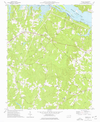 A 1973 historical topographic map of Thelma in North Carolina produced by the United States Geological Survey (USGS). It shows contour lines, place names, water bodies and roads. Map services and data available from U.S. Geological Survey, National Geospatial Program. Map was obtained from https:...