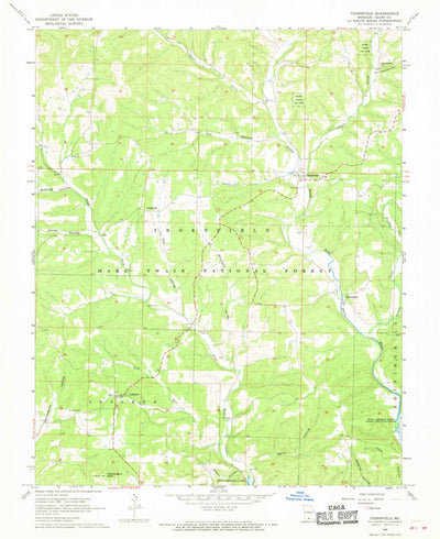 A 1968 historical topographic map of Thornfield in Missouri produced by the United States Geological Survey (USGS). It shows contour lines, place names, water bodies and roads. Map services and data available from U.S. Geological Survey, National Geospatial Program. Map was obtained from https://...