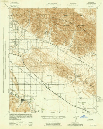 A 1944 historical topographic map of Thousand Palms in California produced by the United States Geological Survey (USGS). It shows contour lines, place names, water bodies and roads. Map services and data available from U.S. Geological Survey, National Geospatial Program. Map was obtained from ht...