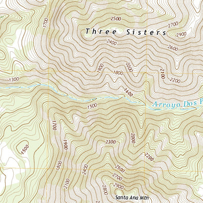 A digital topographic map of Three Sisters in California produced by the United States Geological Survey (USGS) in 2021. The map is part of the National Map series of 7.5 minute quadrangle maps. It shows contour lines, place names, water bodies and roads. Map services and data available from U.S....