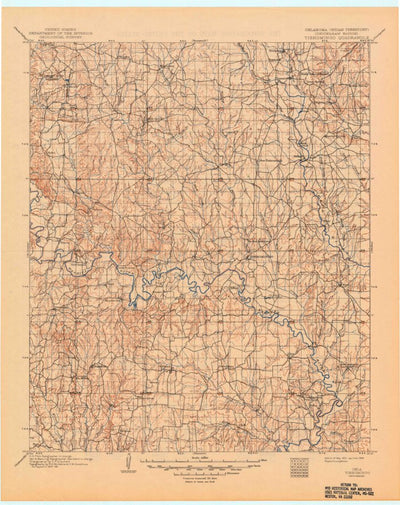 A 1901 historical topographic map of Tishomingo in Oklahoma produced by the United States Geological Survey (USGS). It shows contour lines, place names, water bodies and roads. Map services and data available from U.S. Geological Survey, National Geospatial Program. Map was obtained from https://...