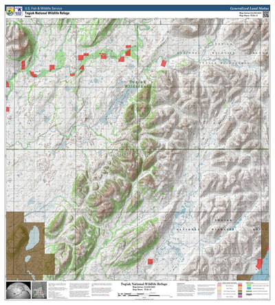 This is a map of Togiak National Wildlife Refuge within the State of Alaska. It depicts the refuge and wilderness boundaries, hillshaded topography, and Federal, State of Alaska, and private ownership boundaries within Togiak NWR.