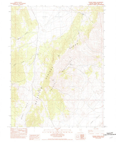 A 1982 historical topographic map of Tognini Spring in Nevada produced by the United States Geological Survey (USGS). It shows contour lines, place names, water bodies and roads. Map services and data available from U.S. Geological Survey, National Geospatial Program. Map was obtained from https:...