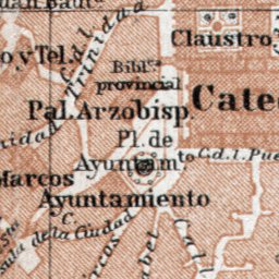Old vintage map of Toledo from 1913, located in Spain, produced by Wagner & Debes, at the scale of 1:40,000 and contains inset(s) drawn to scale(s) of 1:85,000. This digitally re-mastered image is a part of the Discus Media 1900 Collection.