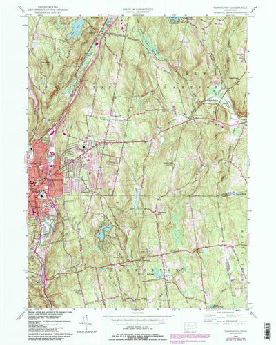 A 1956 historical topographic map of Torrington in Connecticut produced by the United States Geological Survey (USGS). It shows contour lines, place names, water bodies and roads. Map services and data available from U.S. Geological Survey, National Geospatial Program. Map was obtained from https...