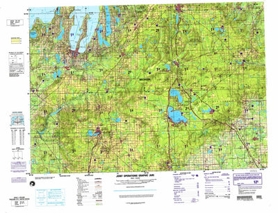 Traverse City, Michigan, United States is the clearest topo map published at this scale, with layer coloring, relief shading, and contours. It is part of the Joint Operations Graphic (JOG) / 1501 Air series, published by the U.S. government.