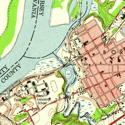 A 1947 historical topographic map of Trenton East in New Jersey produced by the United States Geological Survey (USGS). It shows contour lines, place names, water bodies and roads. Map services and data available from U.S. Geological Survey, National Geospatial Program. Map was obtained from http...
