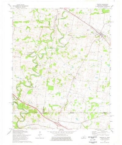 A 1974 historical topographic map of Trenton in Kentucky produced by the United States Geological Survey (USGS). It shows contour lines, place names, water bodies and roads. Map services and data available from U.S. Geological Survey, National Geospatial Program. Map was obtained from https://www...