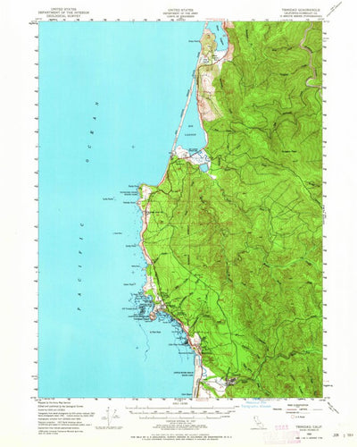 A 1952 historical topographic map of Trinidad in California produced by the United States Geological Survey (USGS). It shows contour lines, place names, water bodies and roads. Map services and data available from U.S. Geological Survey, National Geospatial Program. Map was obtained from https://...