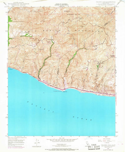 A 1949 historical topographic map of Triunfo Pass in California produced by the United States Geological Survey (USGS). It shows contour lines, place names, water bodies and roads. Map services and data available from U.S. Geological Survey, National Geospatial Program. Map was obtained from http...