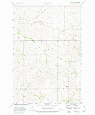 A 1974 historical topographic map of Trotters in North Dakota produced by the United States Geological Survey (USGS). It shows contour lines, place names, water bodies and roads. Map services and data available from U.S. Geological Survey, National Geospatial Program. Map was obtained from https:...
