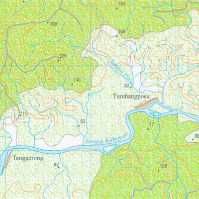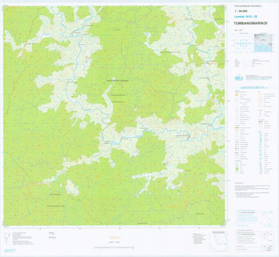This is a topographic map of Tumbangmarikoi in Indonesia. It is produced at a scale of 1:50,000 and was released in 1985. The map depicts buildings and other structures, roads, railroads, vegetation, elevation with 25m contour, relief and water bodies. Data was obtained from Badan Informasi Geosp...