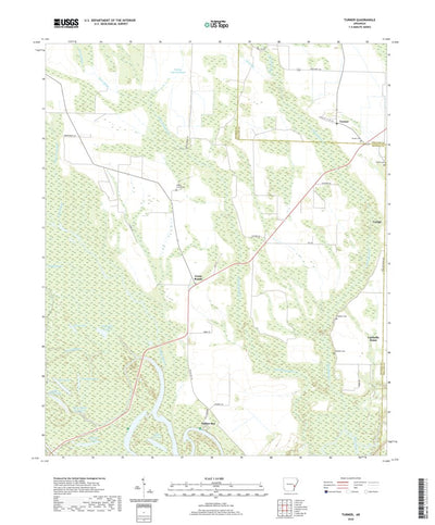 A digital topographic map of Turner in Arkansas produced by the United States Geological Survey (USGS) in 2020. The map is part of the National Map series of 7.5 minute quadrangle maps. It shows contour lines, place names, water bodies and roads. Map services and data available from U.S. Geologic...
