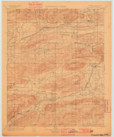 A 1901 historical topographic map of Tuskahoma in Oklahoma produced by the United States Geological Survey (USGS). It shows contour lines, place names, water bodies and roads. Map services and data available from U.S. Geological Survey, National Geospatial Program. Map was obtained from https://w...