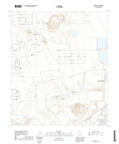 A digital topographic map of Twin Buttes in Arizona produced by the United States Geological Survey (USGS) in 2021. The map is part of the National Map series of 7.5 minute quadrangle maps. It shows contour lines, place names, water bodies and roads. Map services and data available from U.S. Geol...