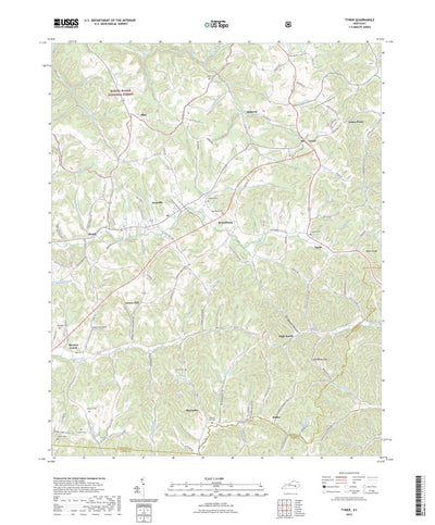 A digital topographic map of Tyner in Kentucky produced by the United States Geological Survey (USGS) in 2022. The map is part of the National Map series of 7.5 minute quadrangle maps. It shows contour lines, place names, water bodies and roads. Map services and data available from U.S. Geologica...