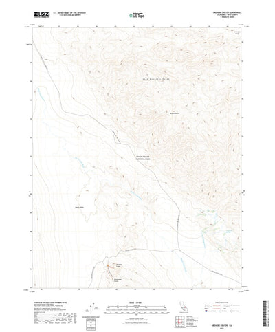 A digital topographic map of Ubehebe Crater in California produced by the United States Geological Survey (USGS) in 2021. The map is part of the National Map series of 7.5 minute quadrangle maps. It shows contour lines, place names, water bodies and roads. Map services and data available from U.S...