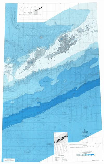Unalaska (1710N-2) is a topographic map of the sea floor created in 1:400,000 scale, in 1966. Detailed depth contours provide the size, shape and distribution of underwater features. The map serves as a tool for performing scientific, engineering, marine geophysical and environmental studies, tha...